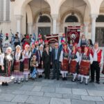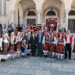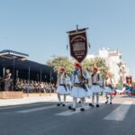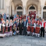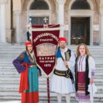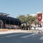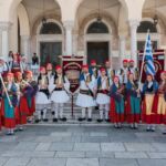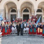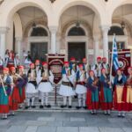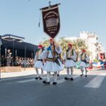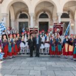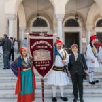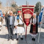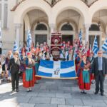 Φουστανελοφόροι του Συλλόγου μετέφεραν το Λάβαρο , με τη συνοδεία πολυμελούς αντιπροσωπείας και απέσπασαν τα χειροκροτήματα του κόσμου, στο πέρασμά τους .