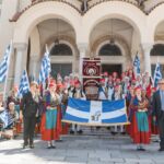 🇬🇷️Όπως κάθε χρόνο έτσι και φέτος, αντιπροσωπεία του Παγκαλαβρυτινού Συλλόγου «άνοιξε» την μαθητική και στρατιωτική παρέλαση, που έγινε στην Πάτρα, σήμερα Δευτέρα 25η Μαρτίου 2019.